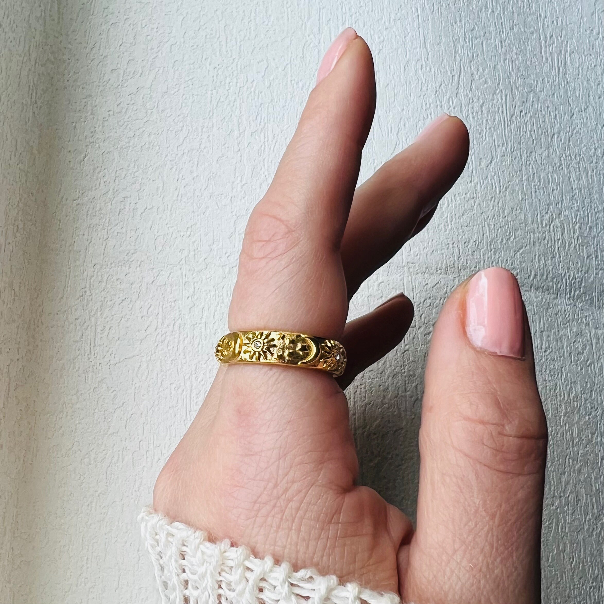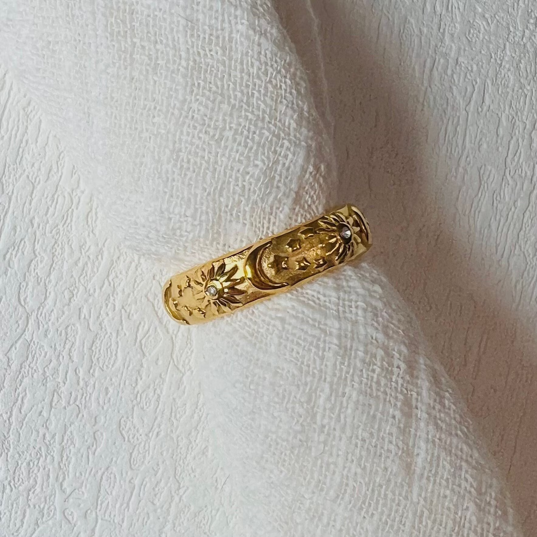 Celestial ring • Sun and moon ring • Waterproof ring • Tarnish free ring
