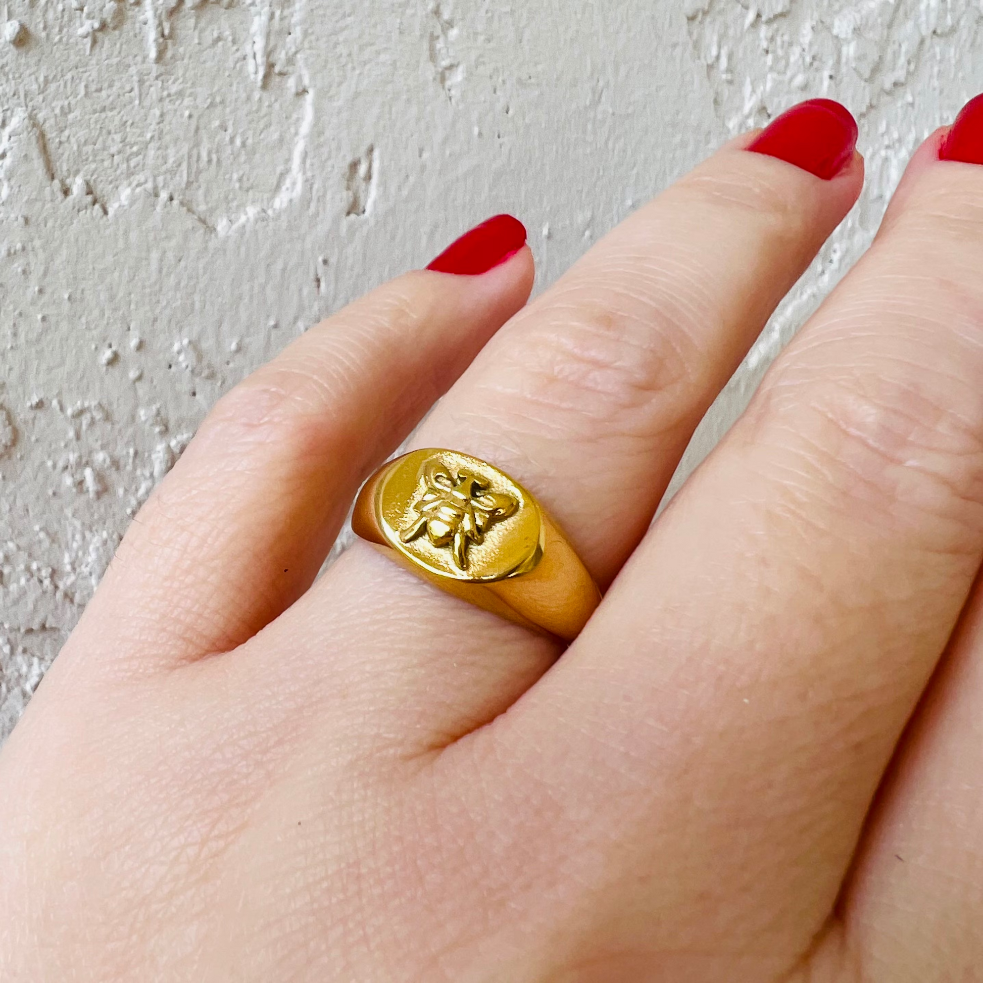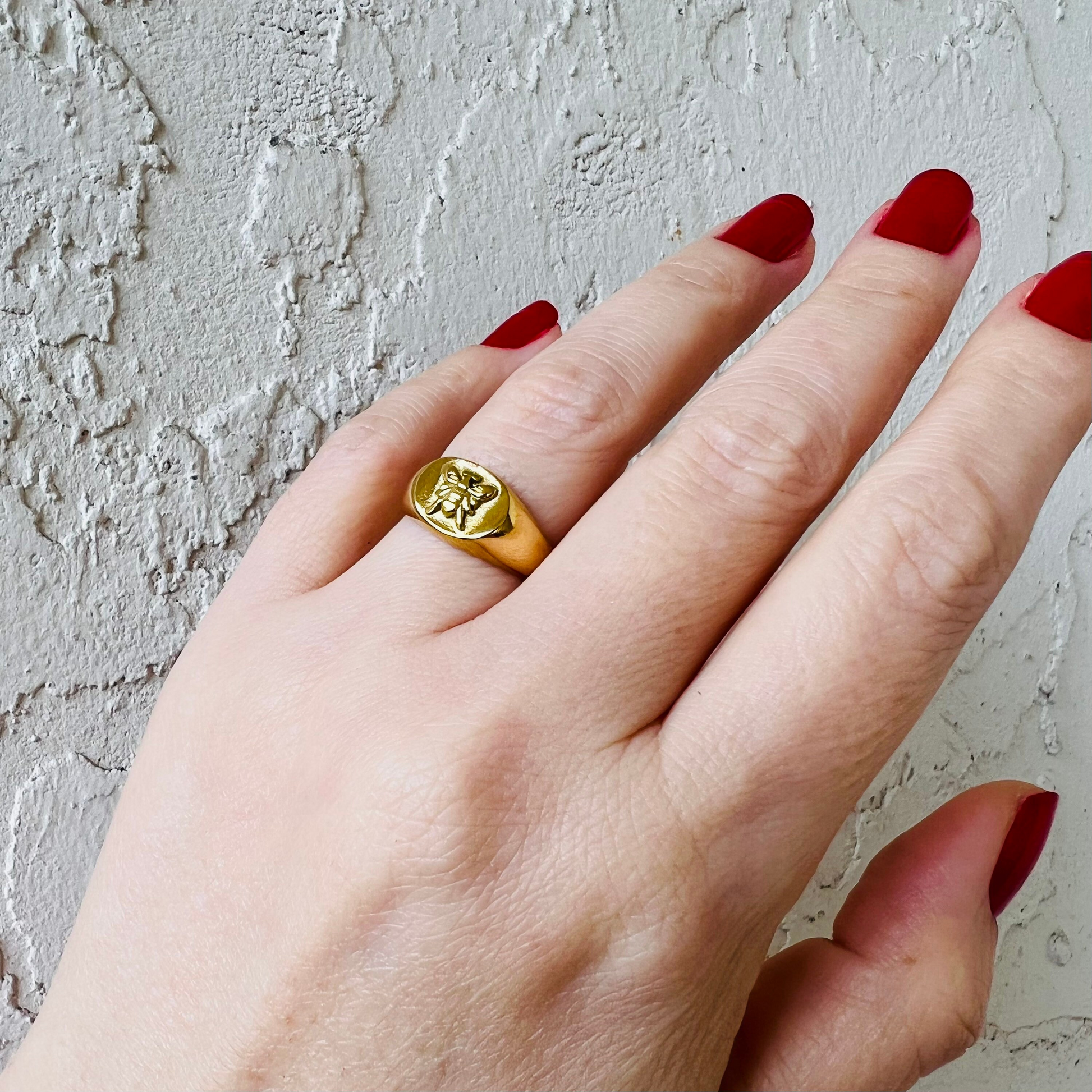 Bee ring • Waterproof ring • Non tarnish ring • Signet ring • Chunky ring