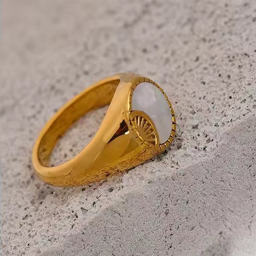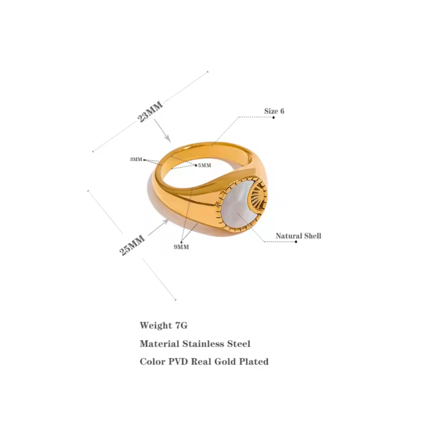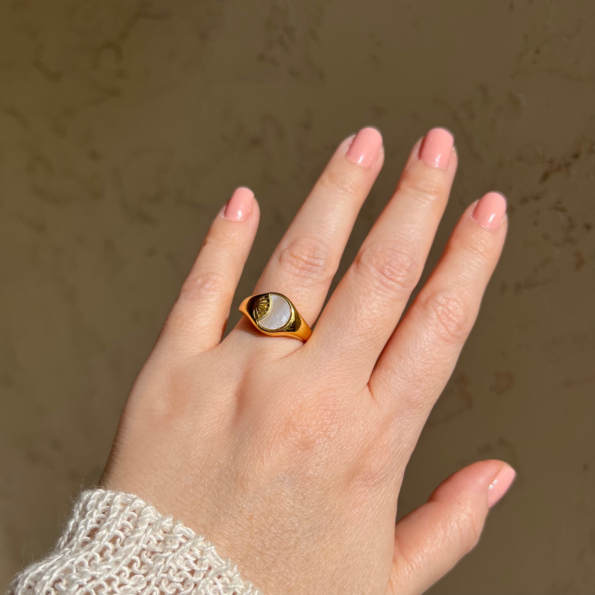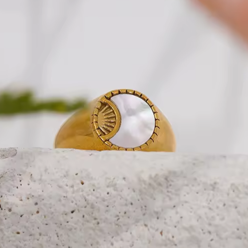 Celestial ring • Sun and moon ring • Waterproof ring • Mother of pearl ring