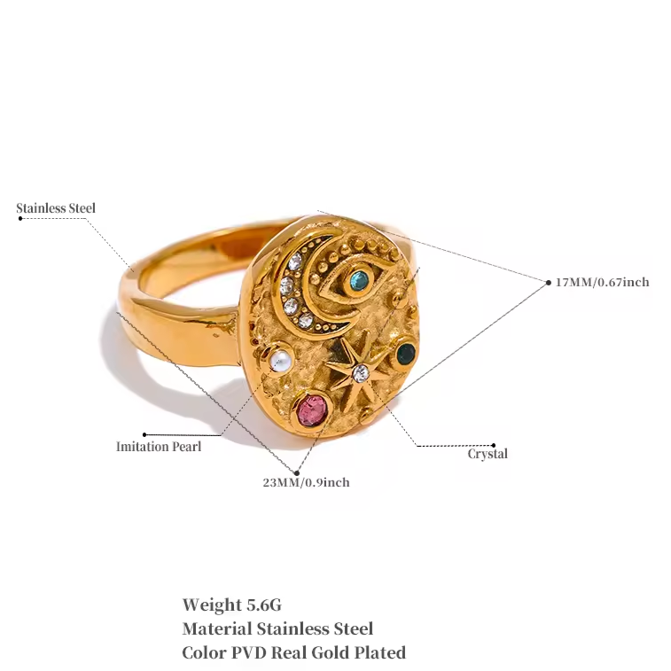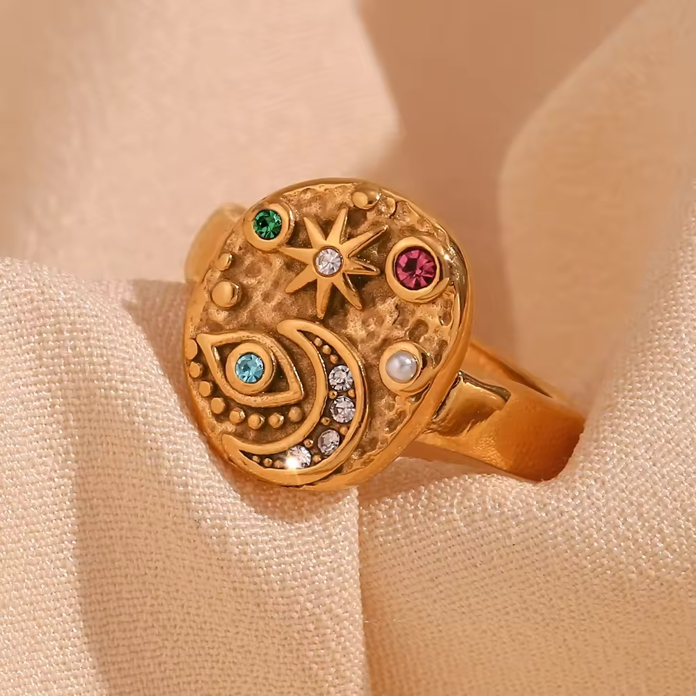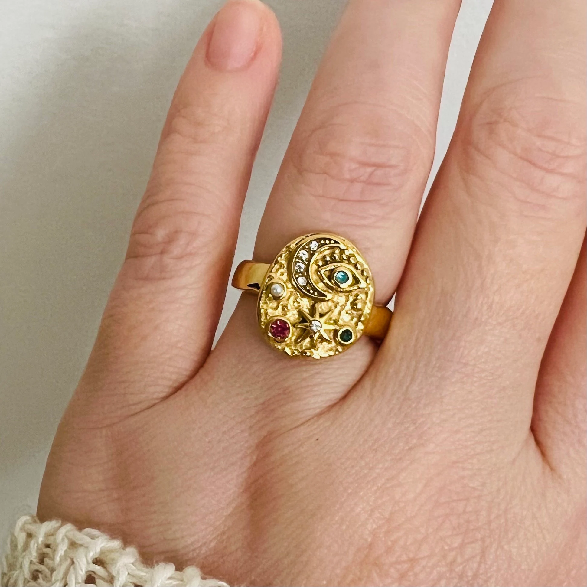 Celestial ring • Sun and moon ring • Waterproof ring • Evil eye ring