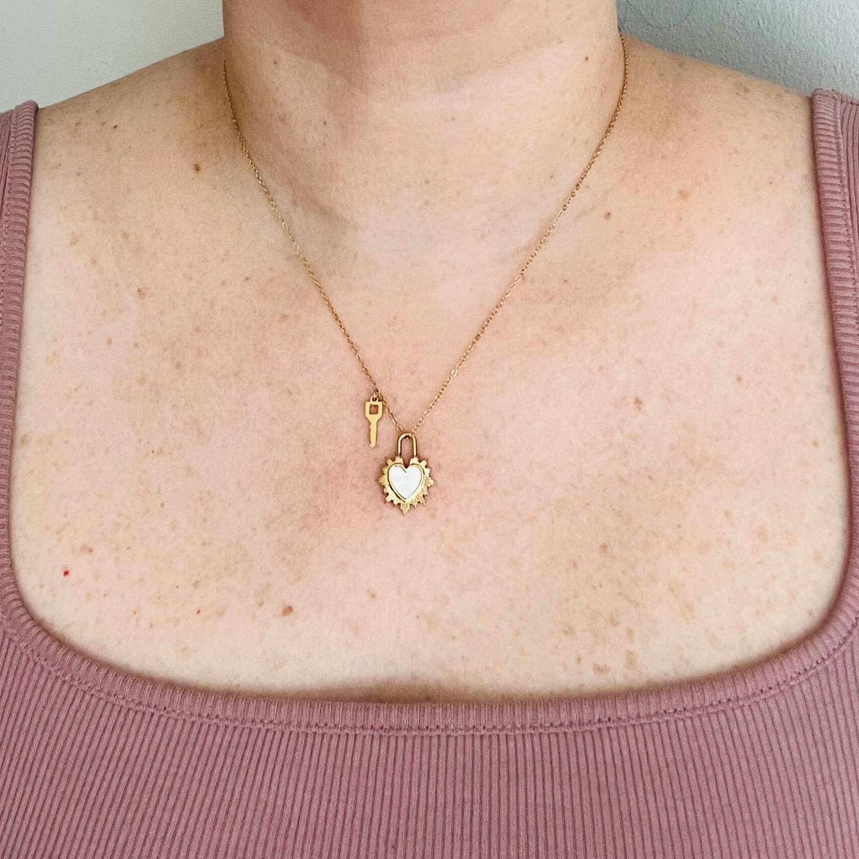 Dainty heart necklace • waterproof necklace • white shell necklace• non tarnish necklace