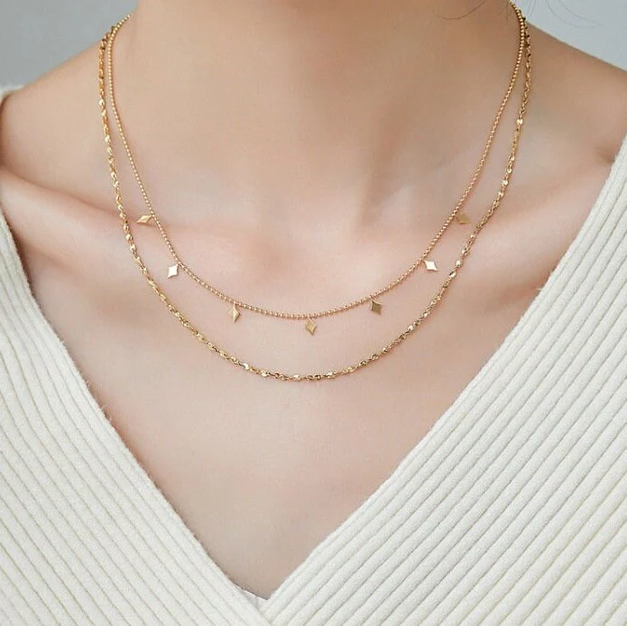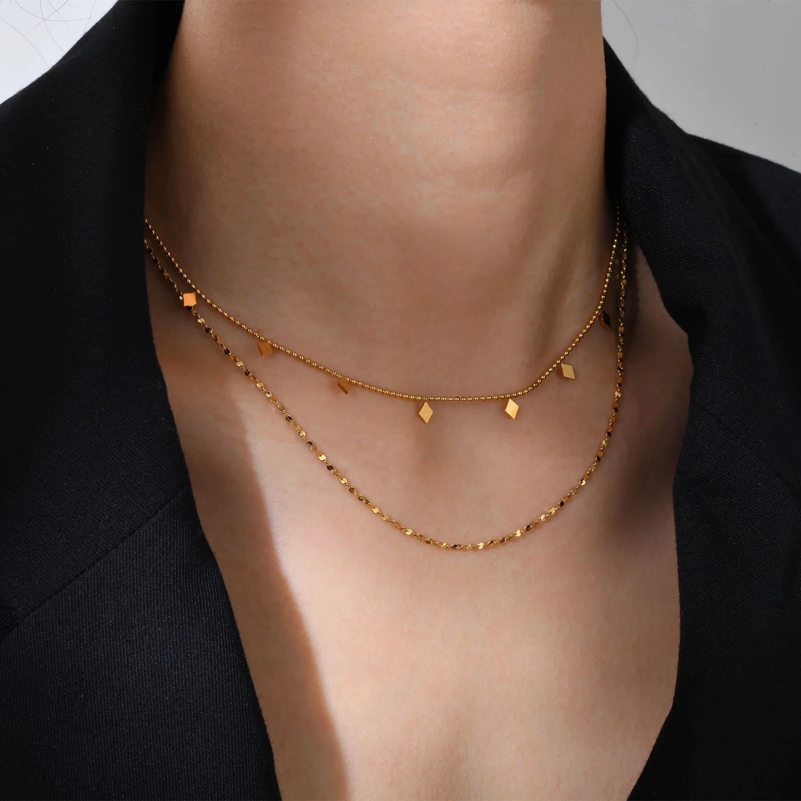 Layered necklace set, waterproof gold double strap necklace, stacking necklace.