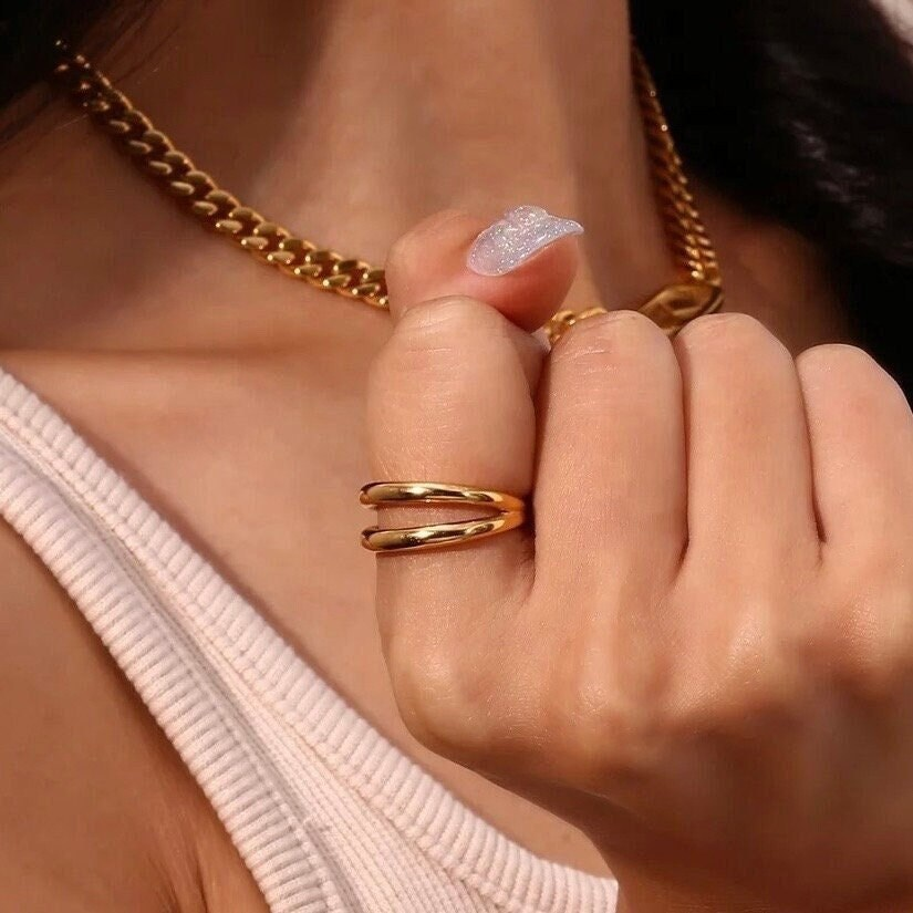 Double band ring • Waterproof ring • Modern ring • Tarnish free ring