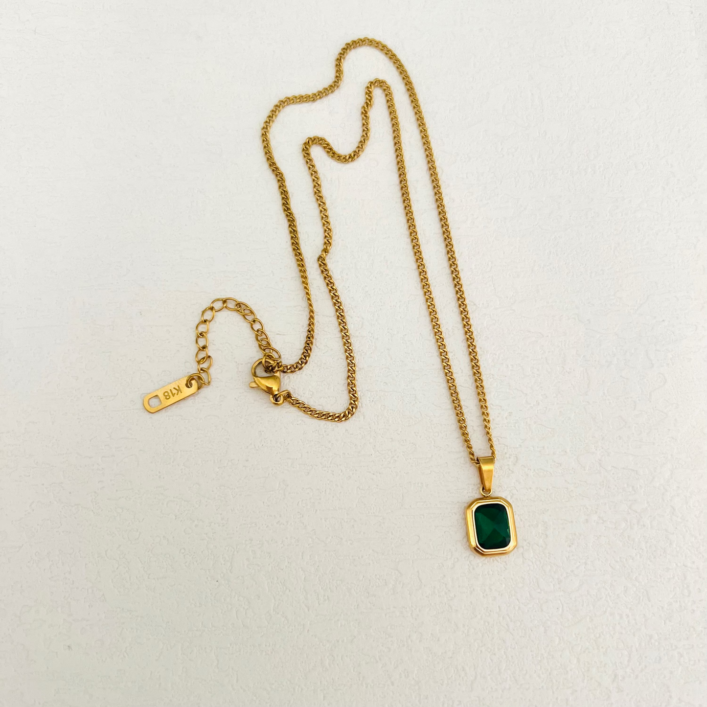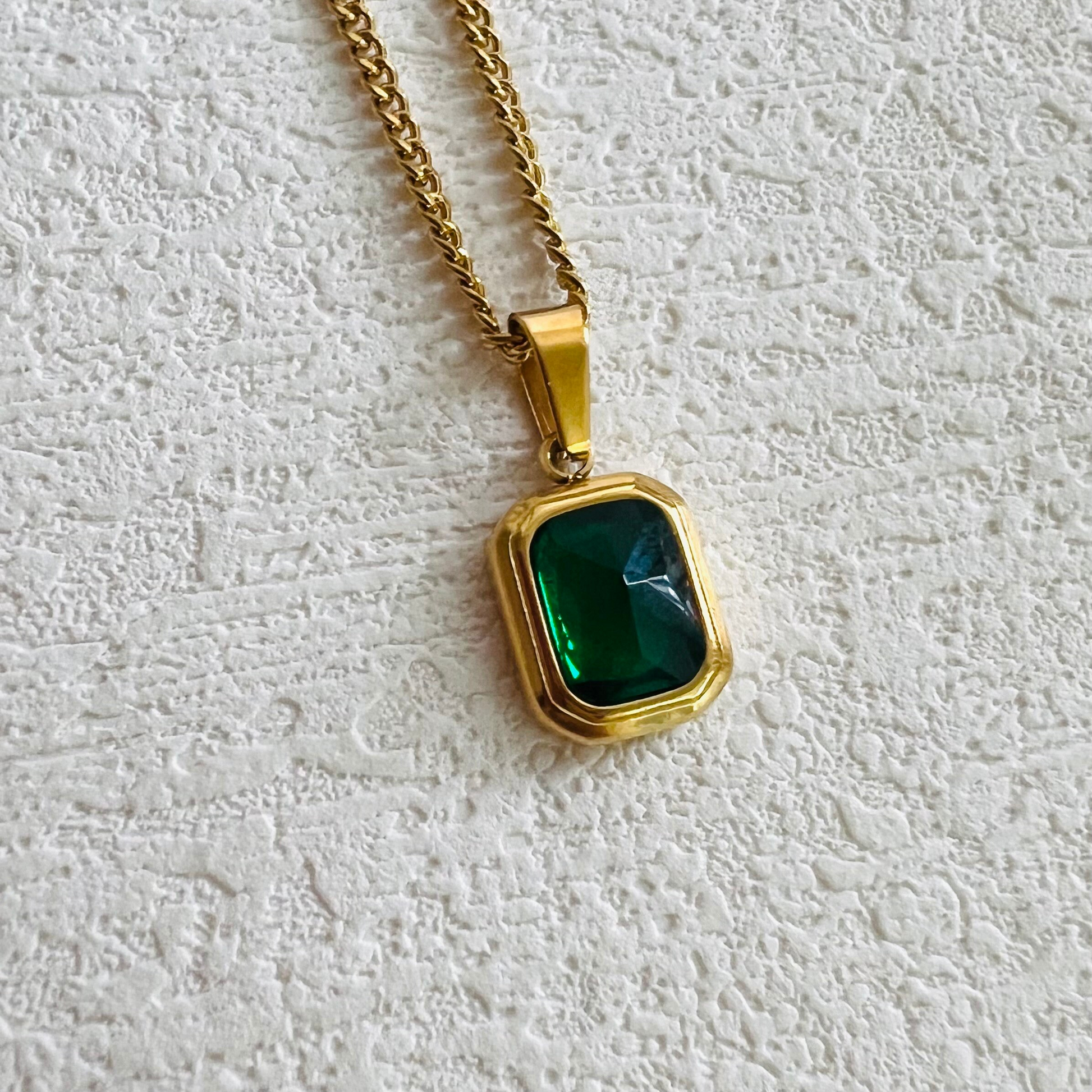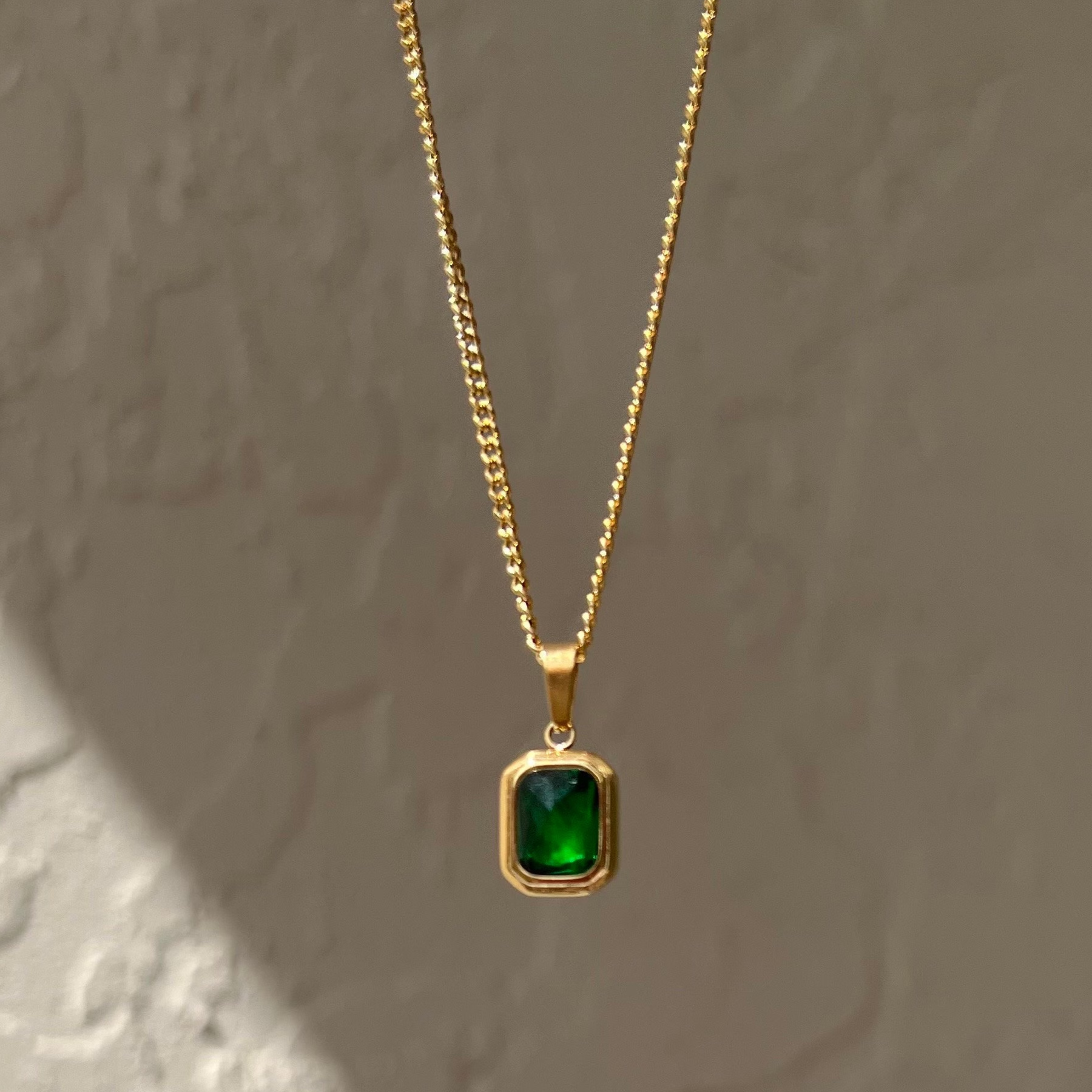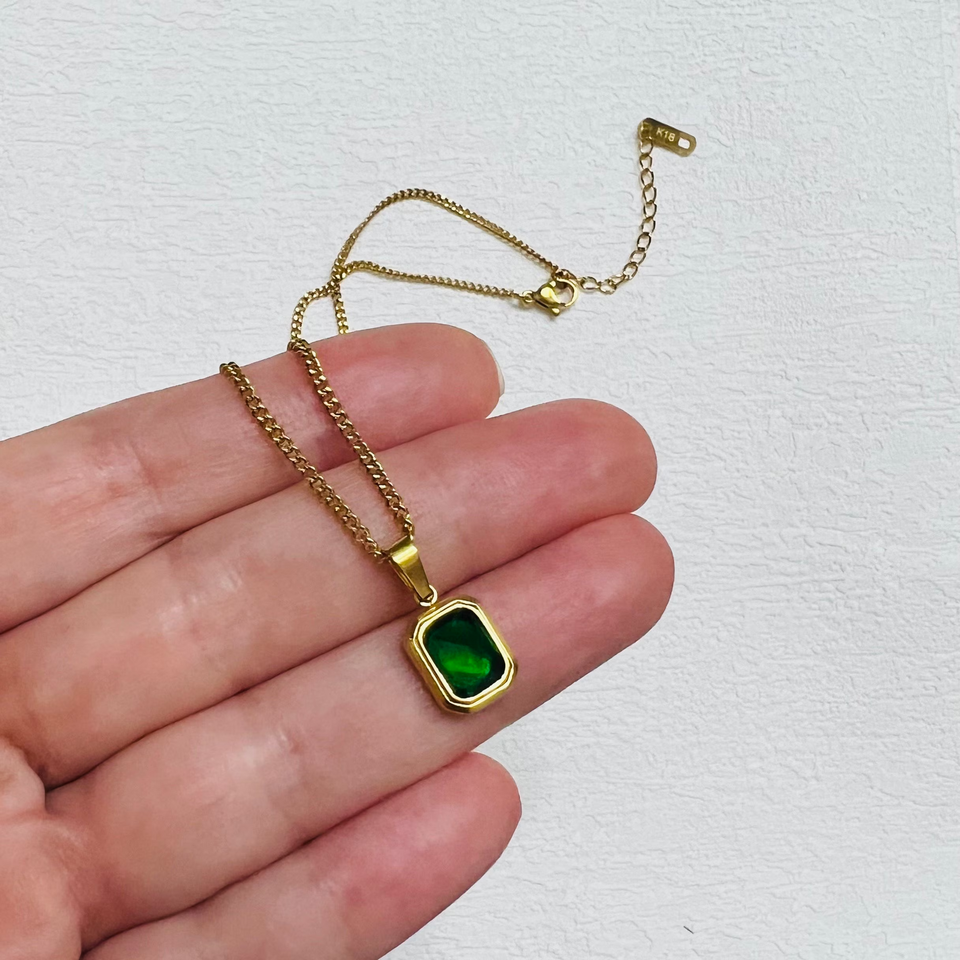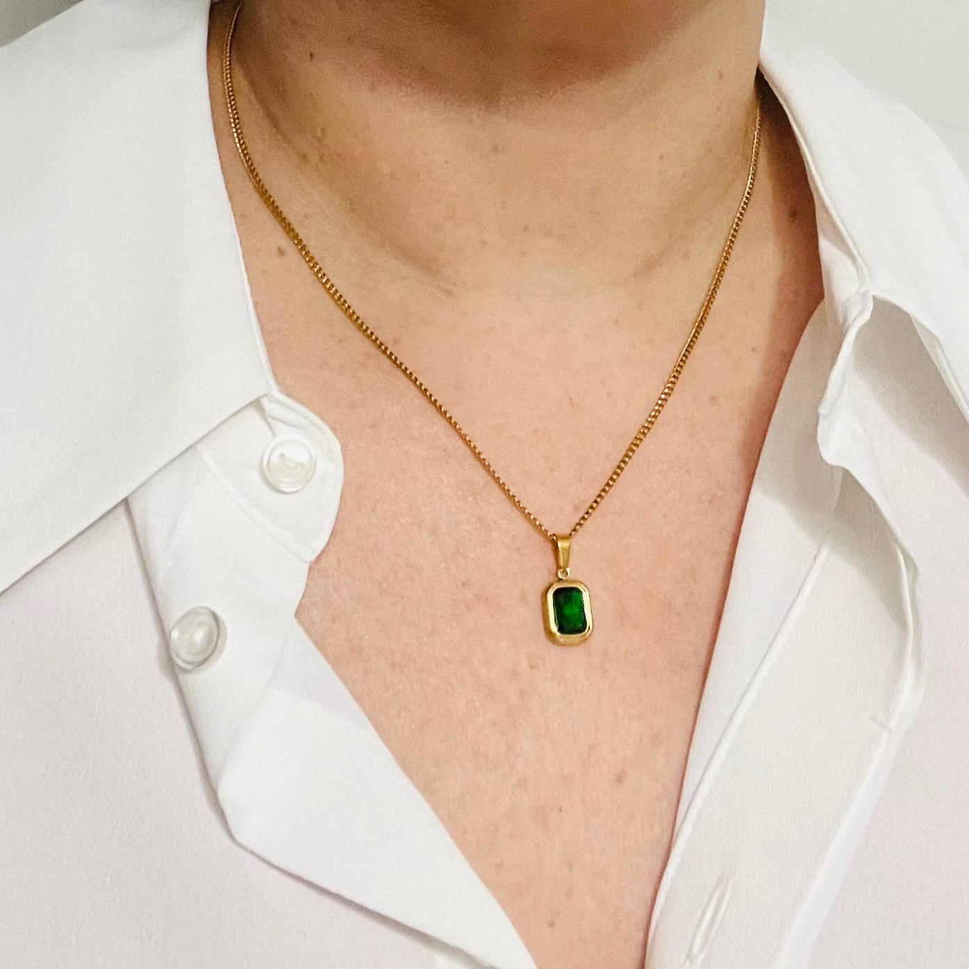 Emerald necklace • Waterproof necklace • Tarnish free necklace