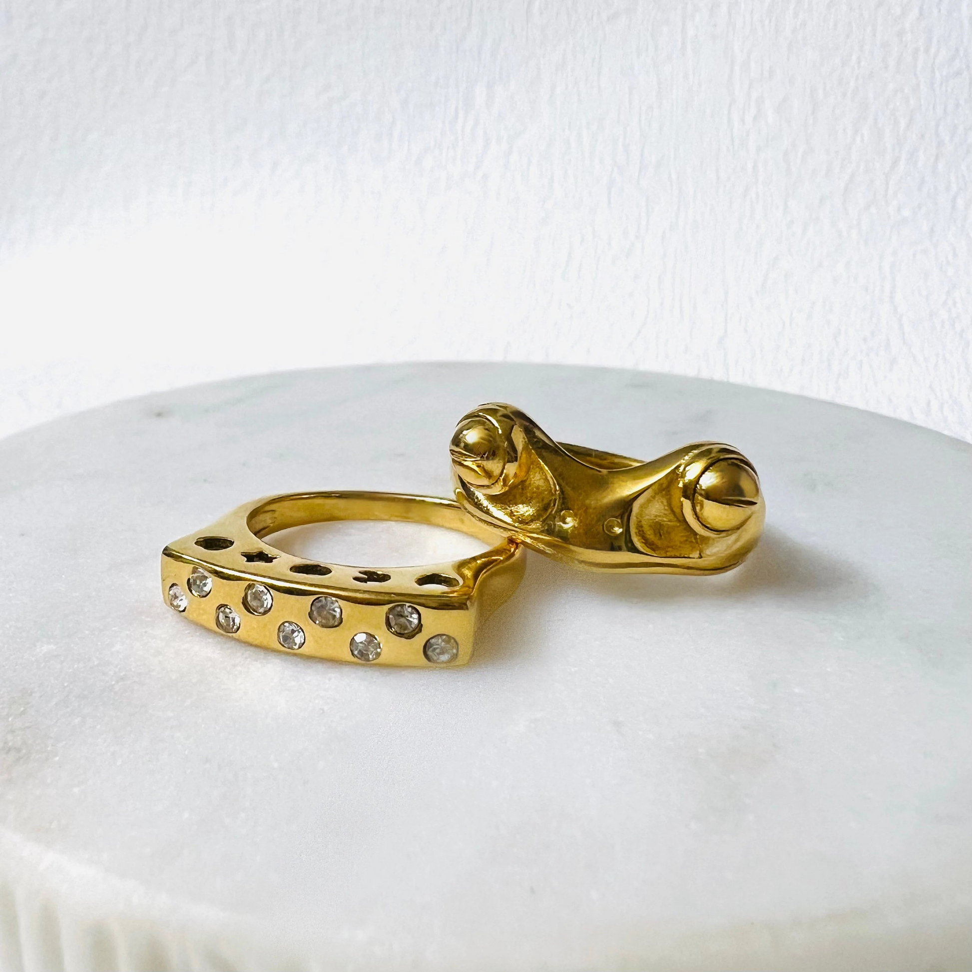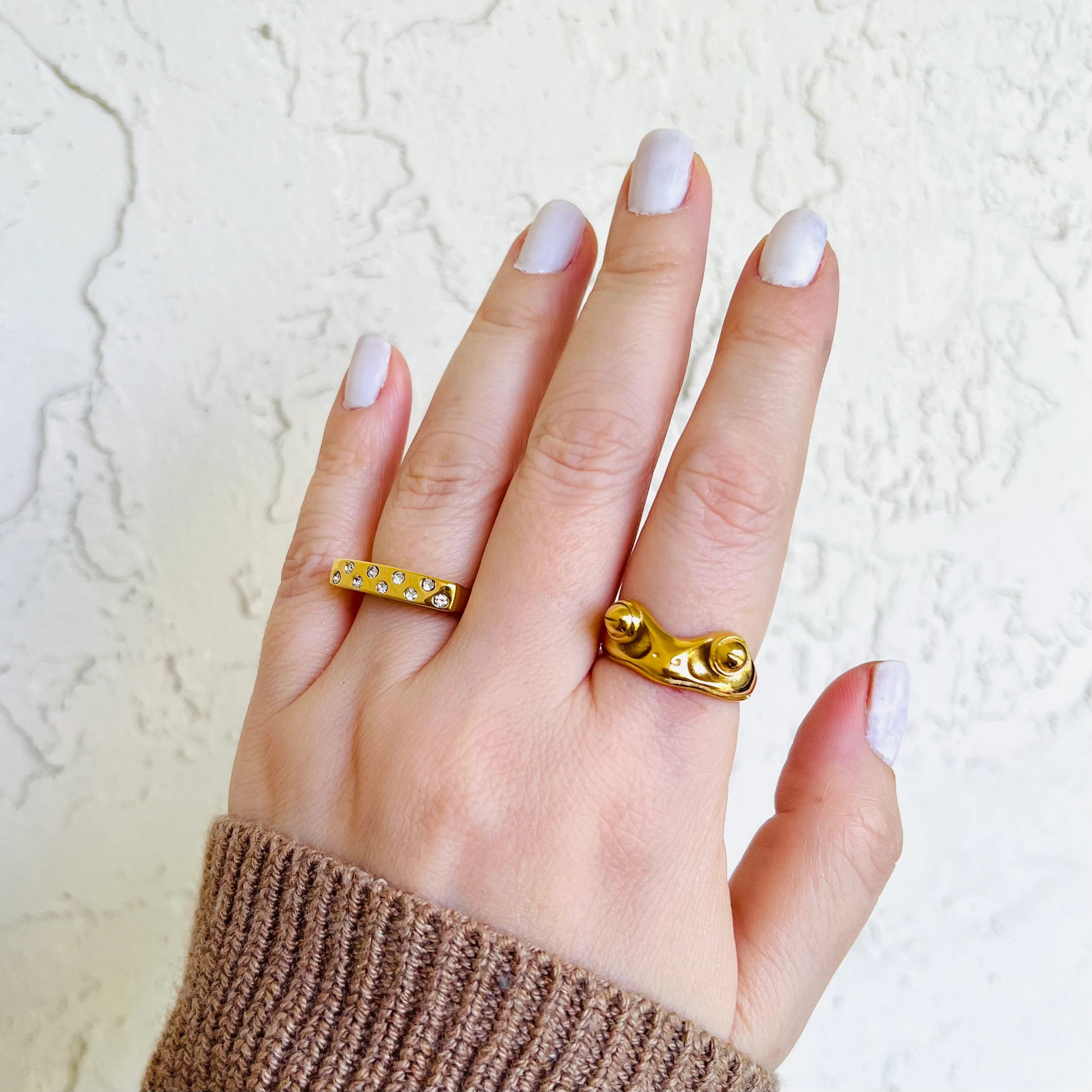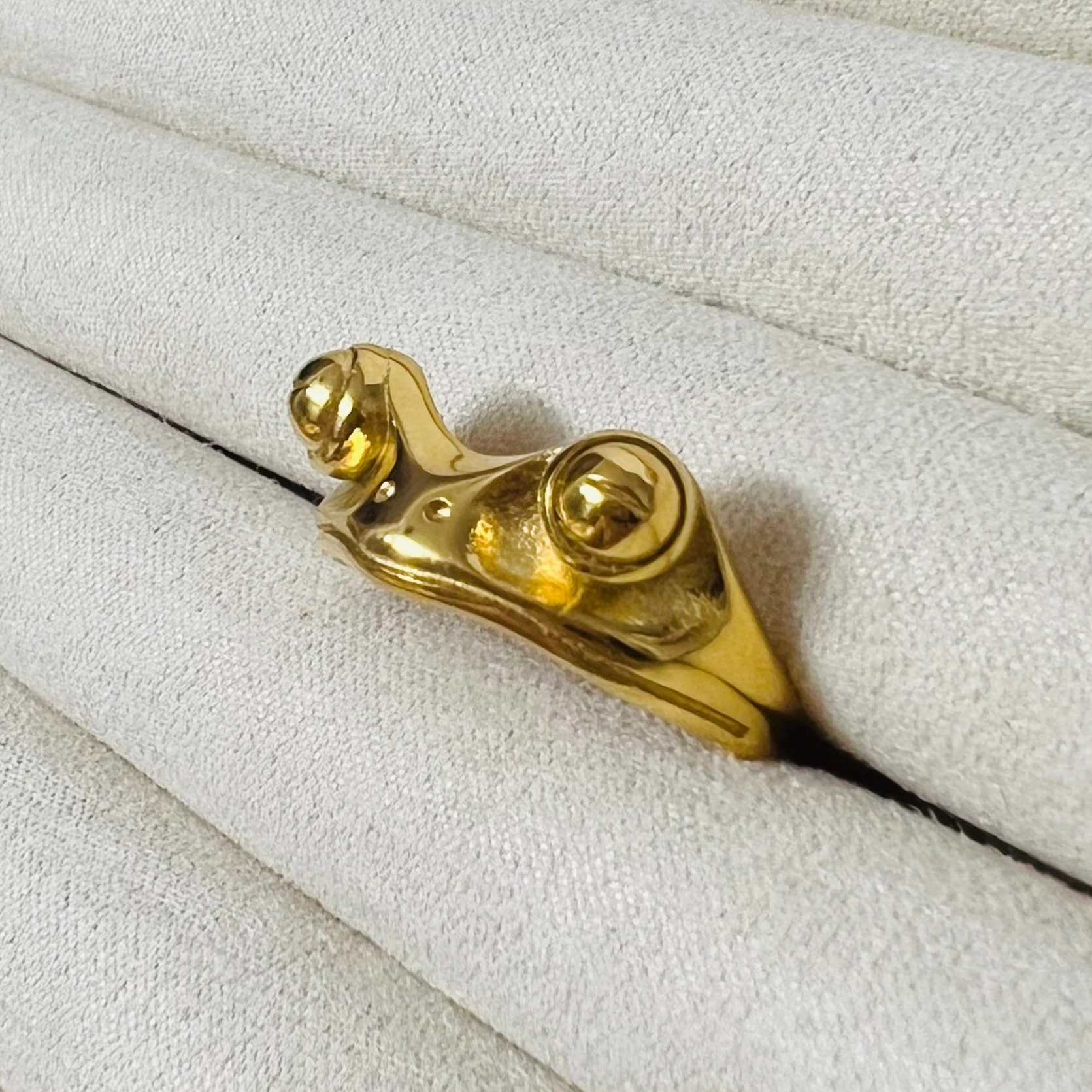 Frog ring, non tarnish ring, waterproof ring, 18k PVD Gold filled froggy ring.