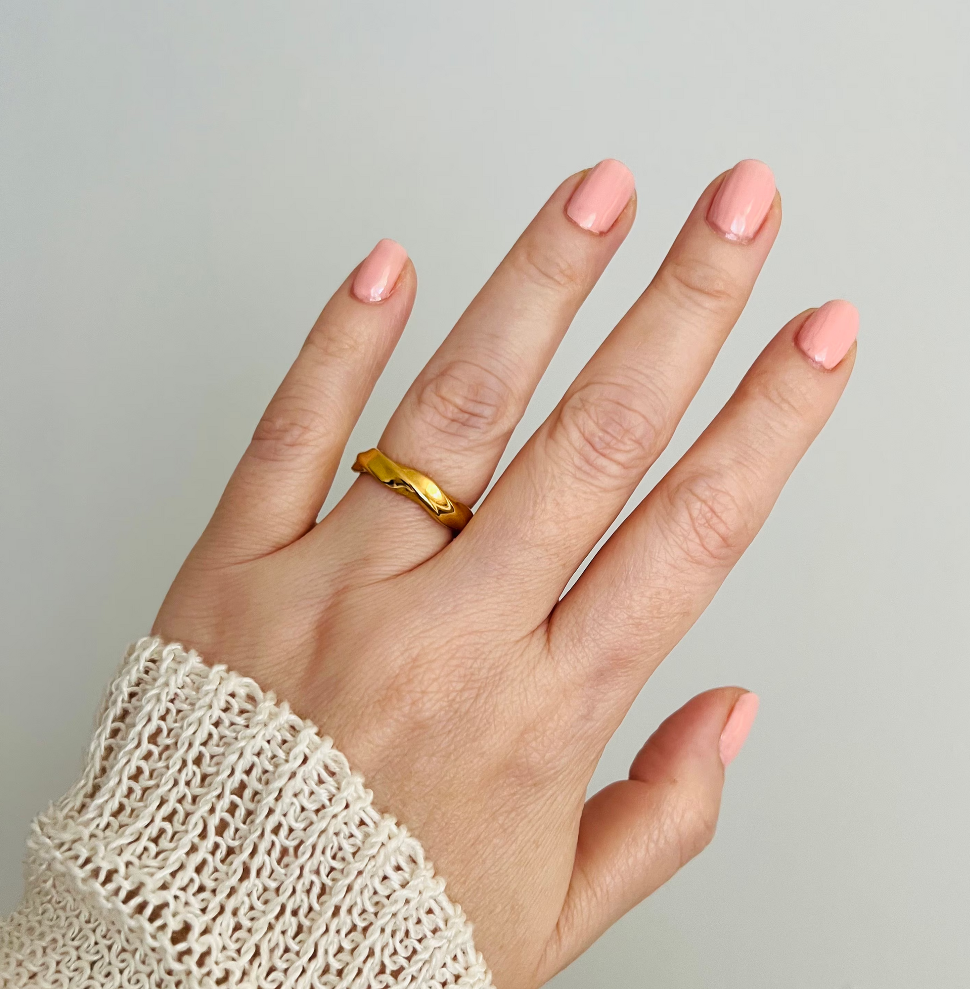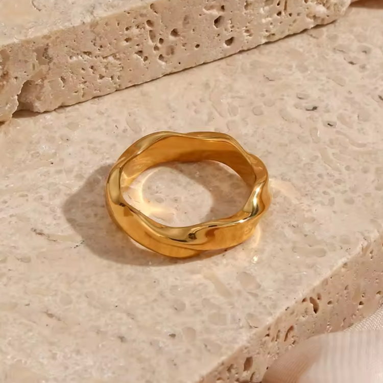 Gold twist ring • Modern ring • Waterproof ring • Tarnish free ring