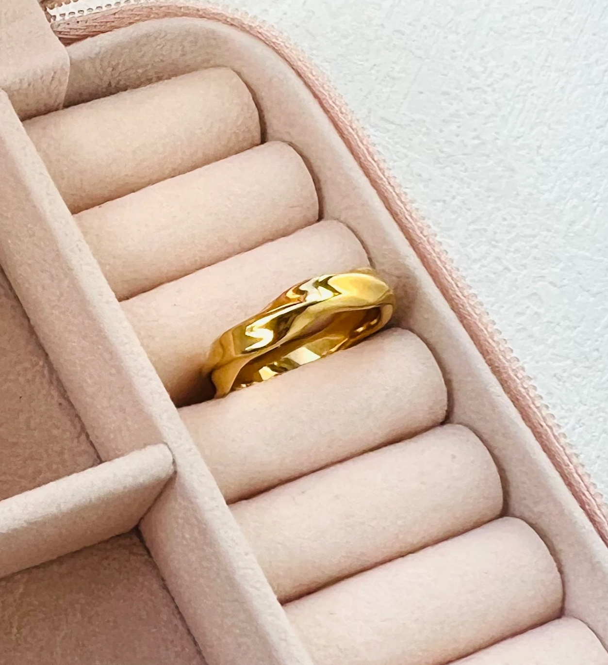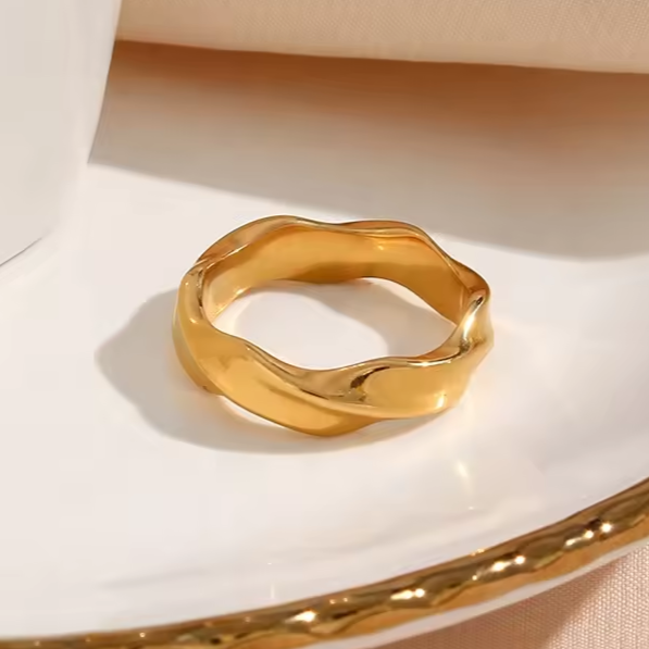 Gold twist ring, waterproof twisted ring, simple modern ring.