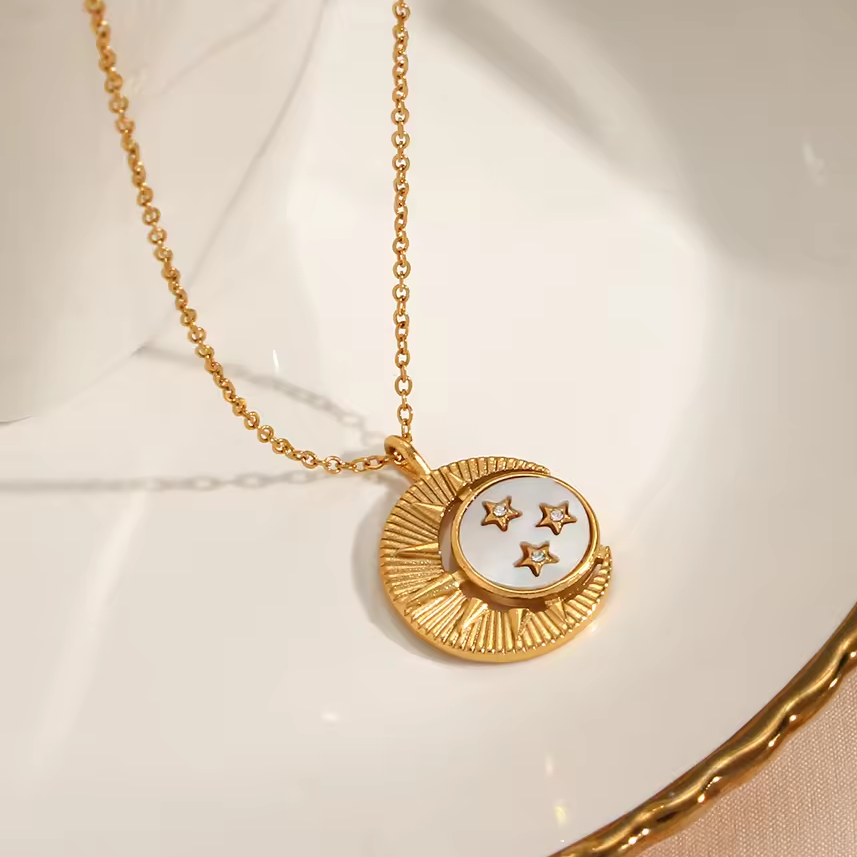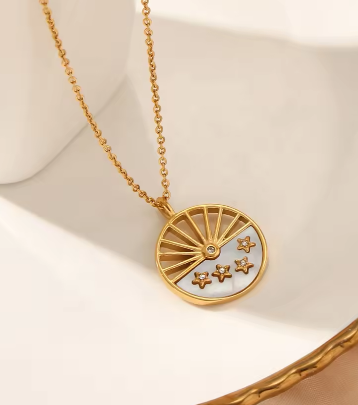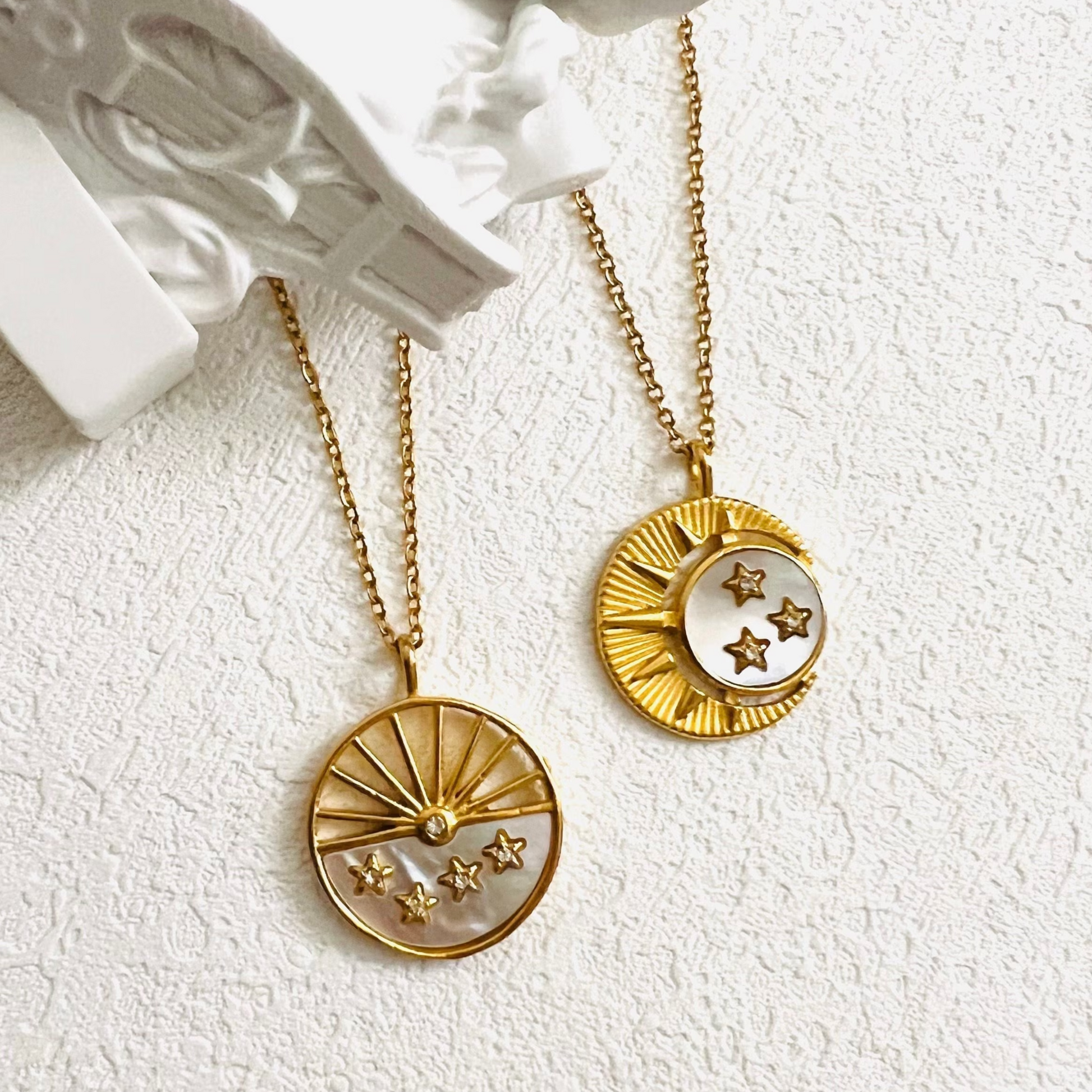 Matching necklaces, waterproof necklace, sun and moon necklaces.