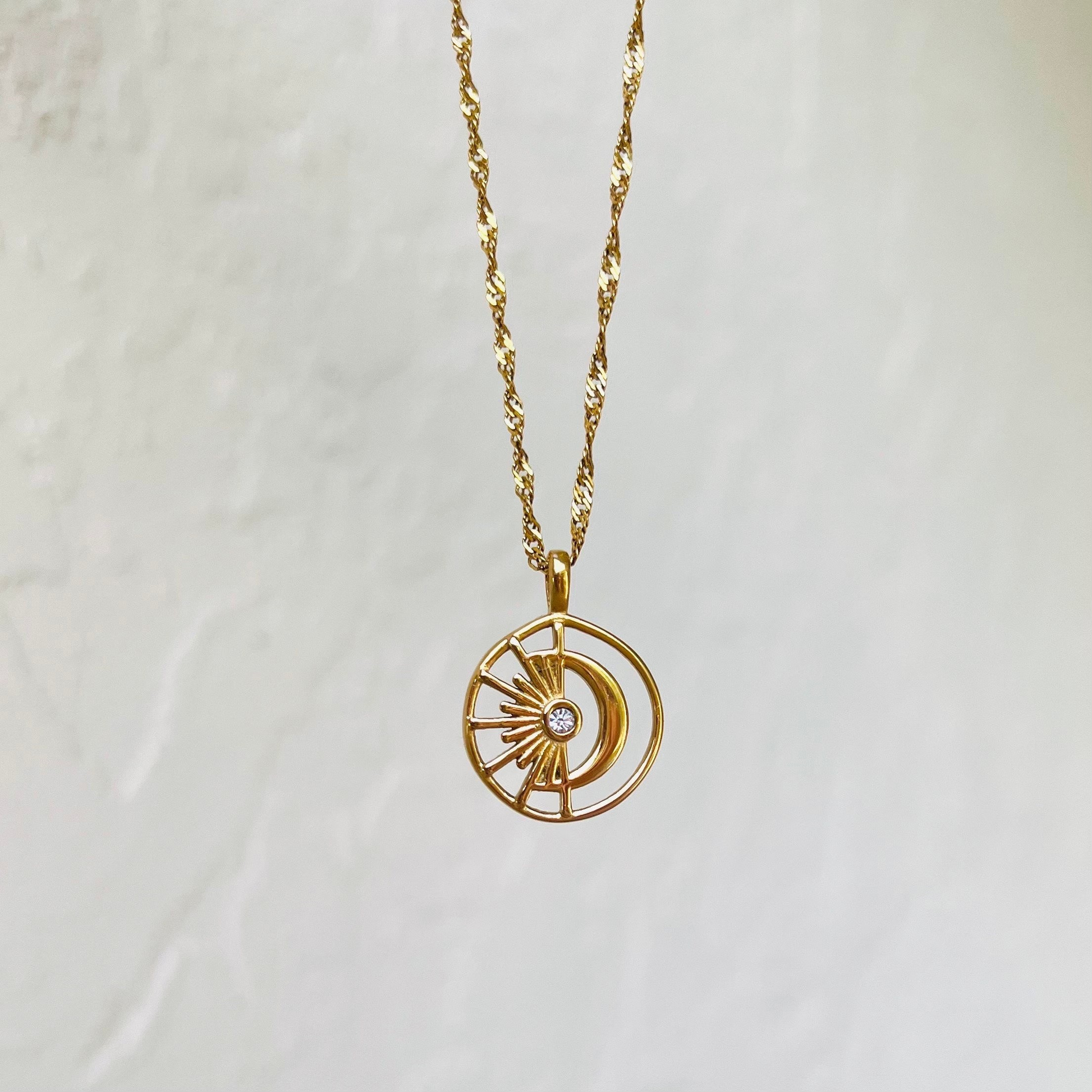 Sun and Moon necklace, waterproof necklace, eclipse necklace.