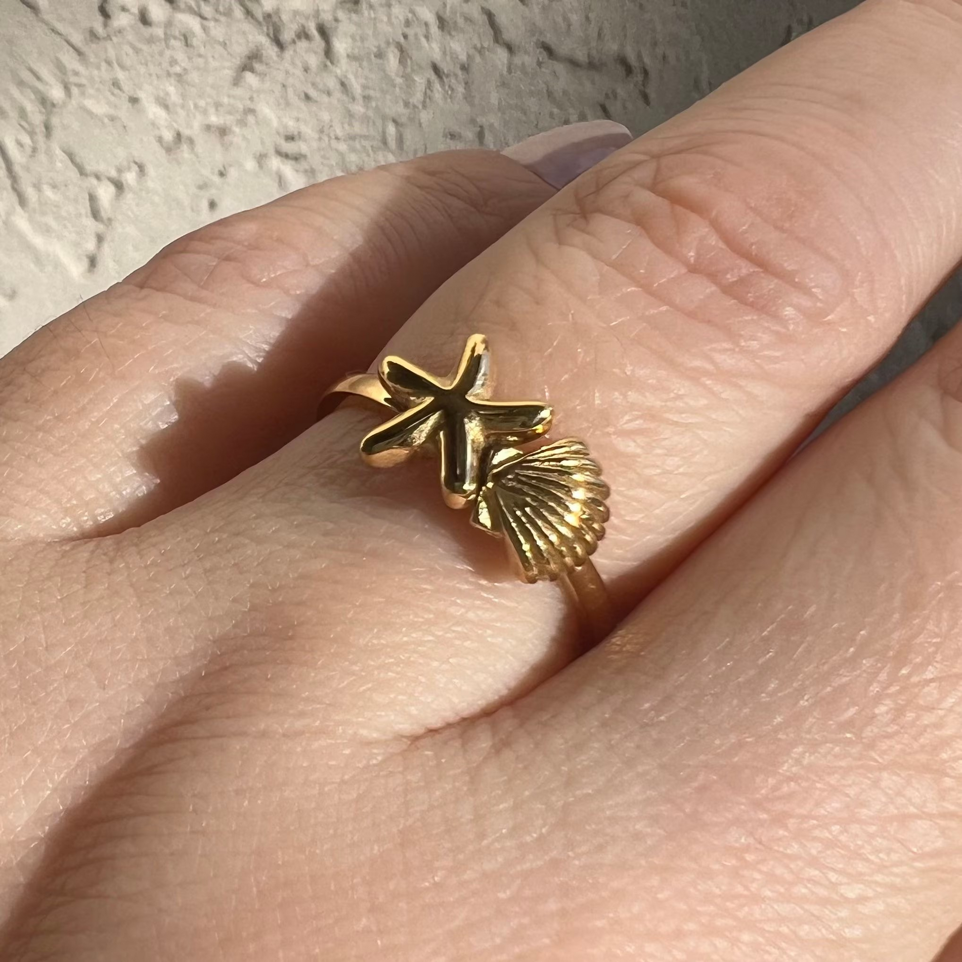 Starfish ring • Waterproof ring • non tarnish ring • Seashell ring