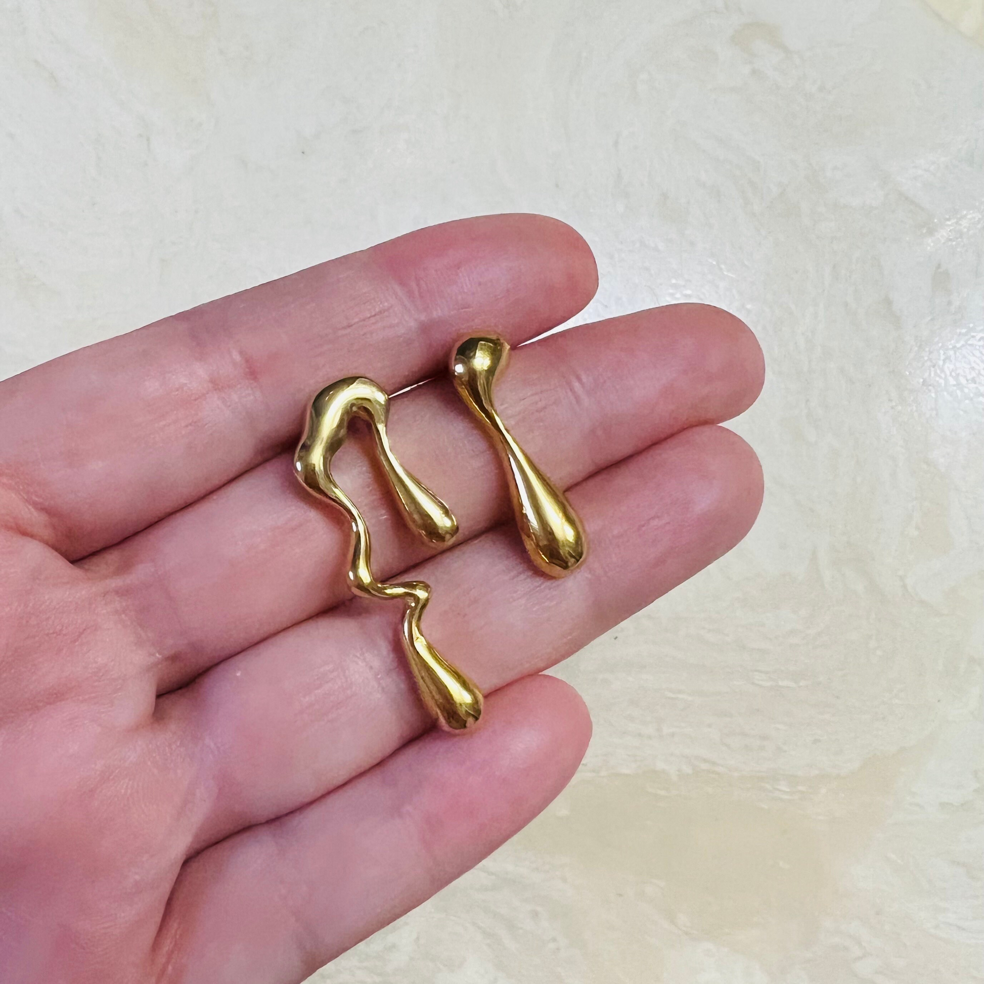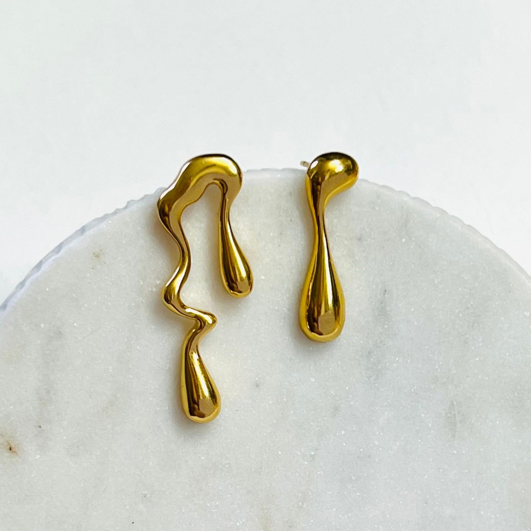 Mismatched earrings, waterproof earrings, dripping earrings.