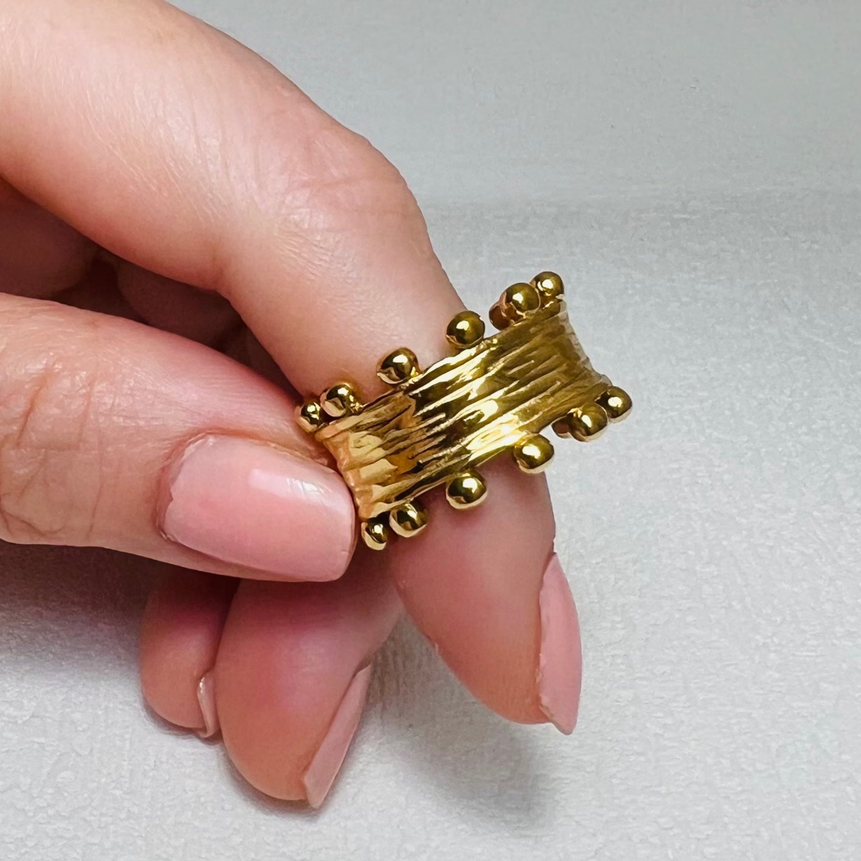 Gold hammered ring, Tarnish free ring,18K PVD gold cigar ring, Waterproof ring, irregular ring, textured ring.