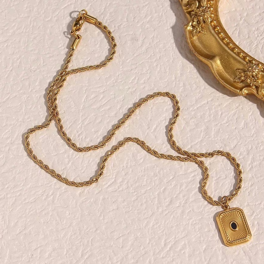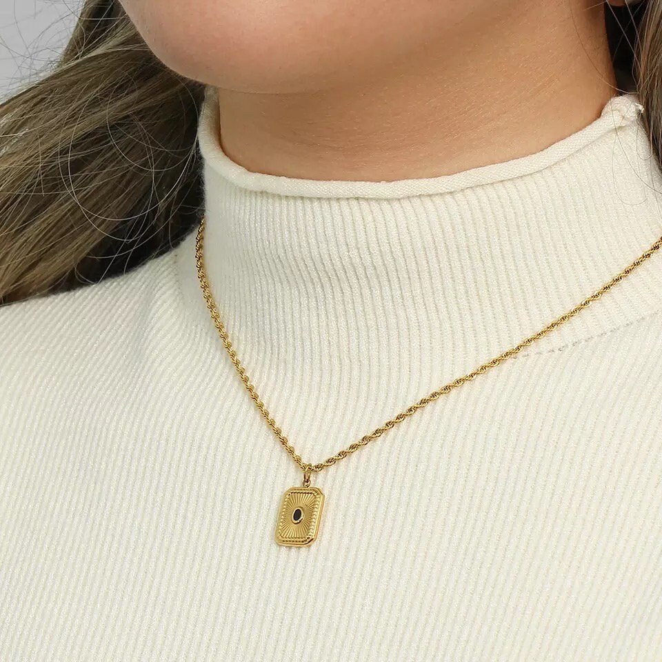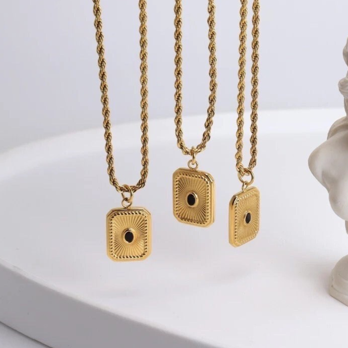 Sunburst necklace • Waterproof necklace • Black stone necklace